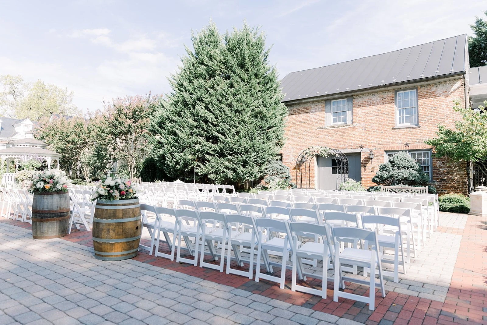 Birkby House, situated in the heart of Leesburg, Virginia, is a perfect Manor House Wedding Venue for gay weddings. The historic setting of Birkby House provides a beautiful backdrop for your special day. Built circa 1770, Thomas Birkby’s estate includes the Main House, the Carriage House, the meticulously landscaped gardens, and the idyllic white gazebo. Our beautiful tented courtyard, featuring chandeliers and specialty lighting, accommodates about 200 guests for a seated celebration or 225 guests for a standing reception.