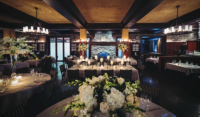 Guests are treated to high-end cuisine from an open kitchen, with menu options ranging from prime-aged steak to fresh-caught seafood, plus a sommelier-curated wine list and 16 draft beers on tap. An on-site planner helps bring every detail together in a setting designed to impress from start to finish.