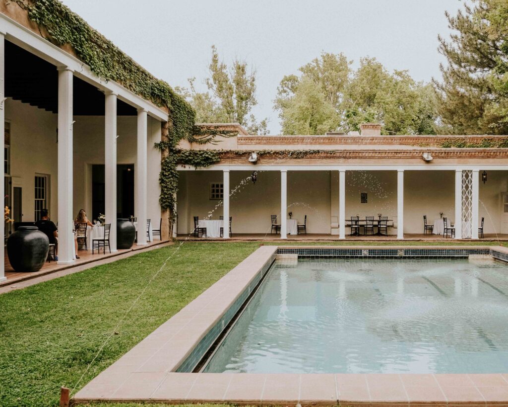 Los Poblanos is a historic inn and working farm nestled in the heart of Rio Grande River Valley. The inn sits on 25 acres of lavender fields, cottonwood trees and blooming meadows. The land’s history dates back to the 14th century, the historic buildings were commissioned in 1932. Los Poblanos was designed by influential architect John Gaw Meem and has been recognised as one of his most impressive projects. The property retains many of its original features including a Spanish courtyard, tile fountains and Kiva fireplaces. There are multiple function areas around the property for you to hire for your LGBTQ+ wedding.